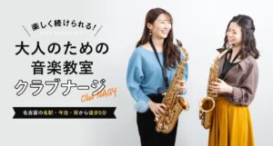 クラブナージ音楽教室は、「楽しくはじめて、長く続けられる」環境作りにこだわる大人向けの教室です。予定に合わせて通えるフリータイム制や当日振替対応など、柔軟な仕組みで通いやすい点が魅力です。